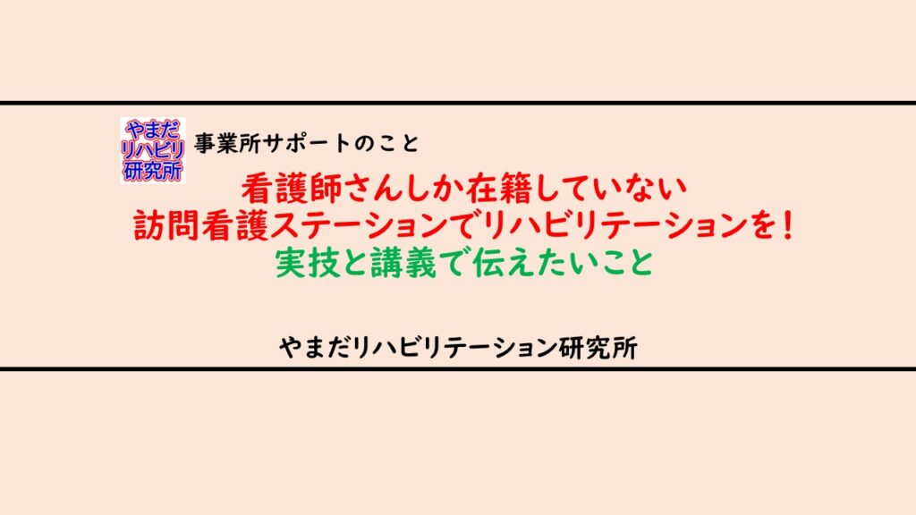 看護師さんだけの訪問看護ステーションでリハビリテーションを実践しませんか?の続編です。