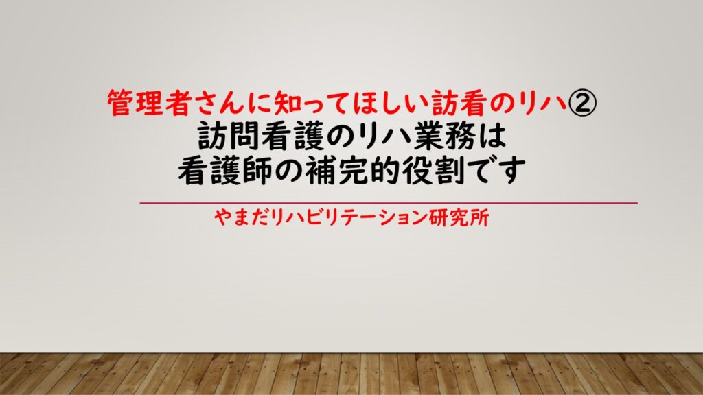 今回のテーマは「訪問看護のリハ業務は看護師の補完的役割です」