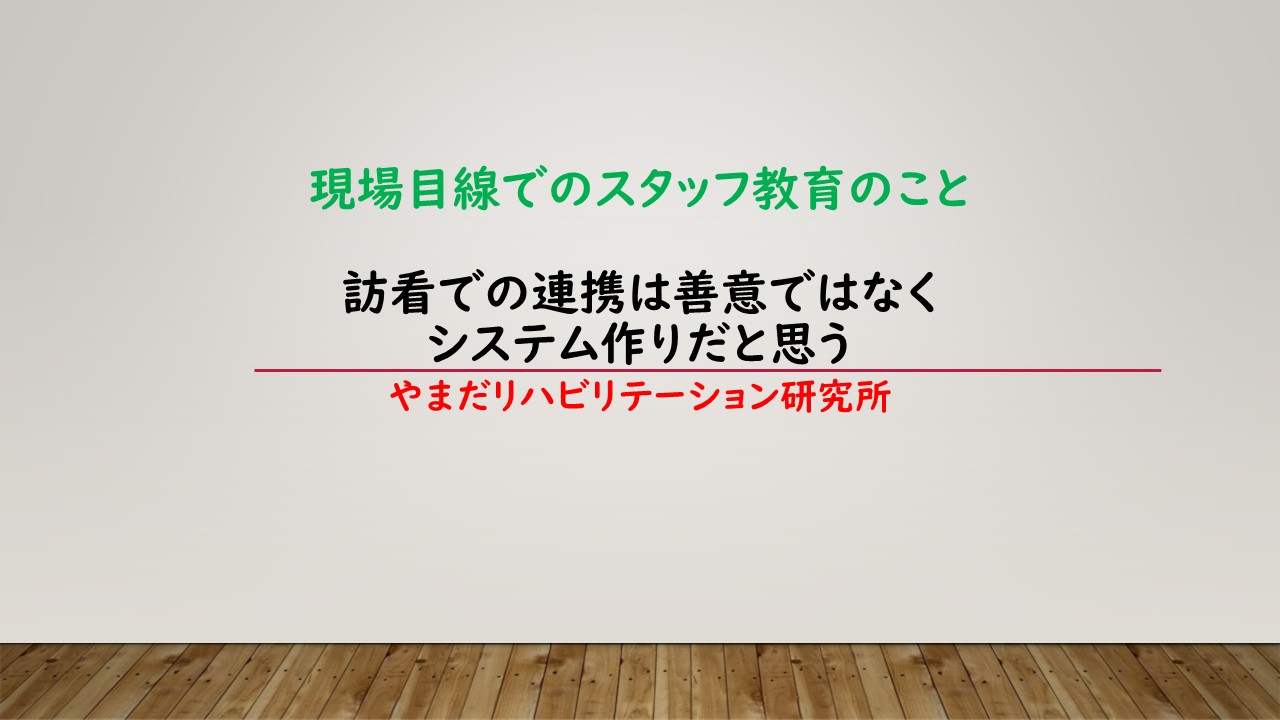 そういう話を重ねていくことで、事業所内でのリハに対しての共通理解が進むし、看護師さんがリハビリテーションの知識を得て訪問時に実践することが出来るんですよね。